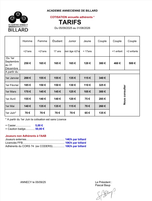 Certains samedi sont réservés aux compétitions : il est suggéré de se renseigner par téléphone avant de venir.